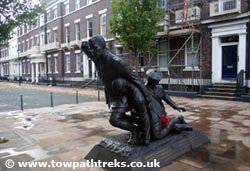 In the north west corner of the square is a large bronze sculpture by Liverpool artist Tom Murphy called Liverpool Heroes. It depicts double Victoria Cross winner Noel Chavasse helping a wounded soldier. The statue also has the names of 15 more soldiers from Liverpool that received the VC. It has been a popular statue since its unveiling in 2008.