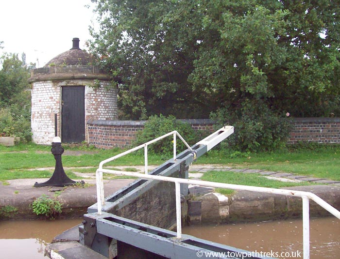 The top gates of Beeston Stone Lock with a circular lengthsman's hut.