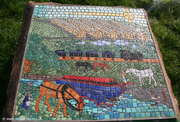 There are a number of these mosaics along the towpath. This one shows a scene of the working canal, railway and terraced housing.