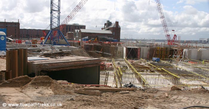 In the foreground is the partially built canal tunnel which will take the canal underneath the edge of the museum. Behind are the museum foundations.
